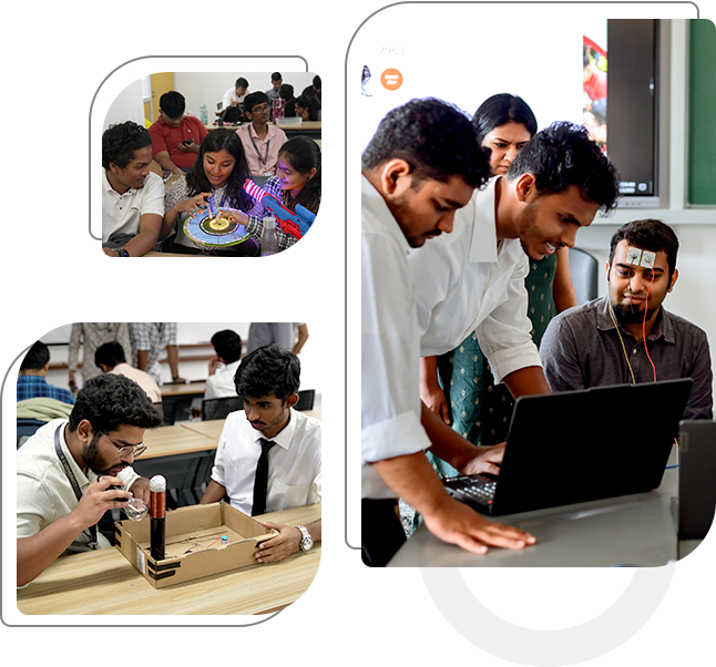 The School of Engineering at RV University is a practice-intensive, future-focused academic environment that prepares engineers for a rapidly evolving world. Strong foundations in core engineering are integrated with emerging technologies, design thinking, and interdisciplinary learning. Our programmes emphasize hands-on studios, prototyping, and collaborative, project-based learning beyond traditional classrooms. Students are trained to analyse complex problems, design innovative and robust solutions, and use technology responsibly.